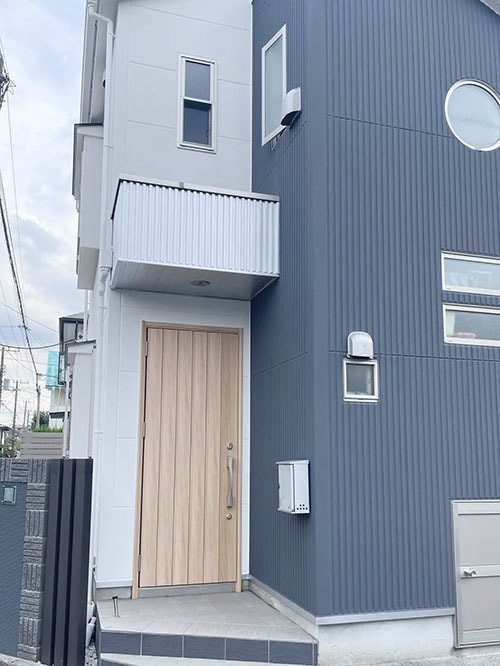 屋根ケラバ金属部+玄関ポーチガルバリウム部