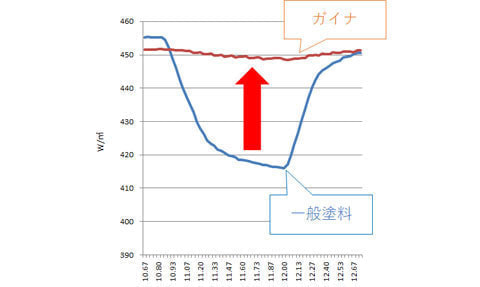 ガイナ表面は特殊セラミックを多層化した塗膜であり、この特殊セラミックが周辺温度に適応する性質があるため、この塗膜面が室温にあわせて同じ温度に近づきます。