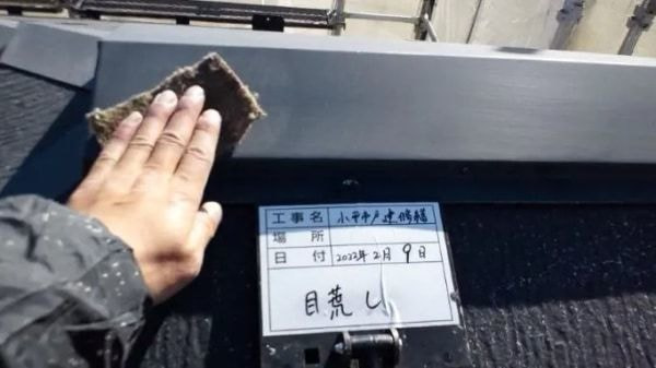 ヤスリをかけます。目荒しをして細かい凸凹をつけることで塗料の密着度が上がります。