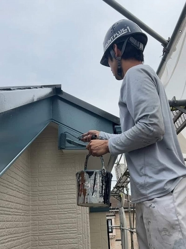 庇の塗装作業