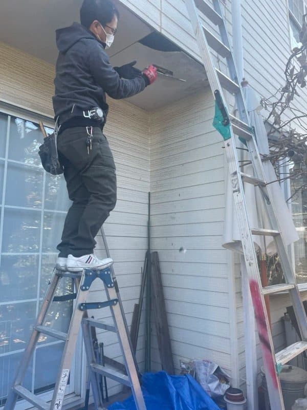 本施工前・事前調査(ドリル穴開け.塞ぎ.軒撤去)