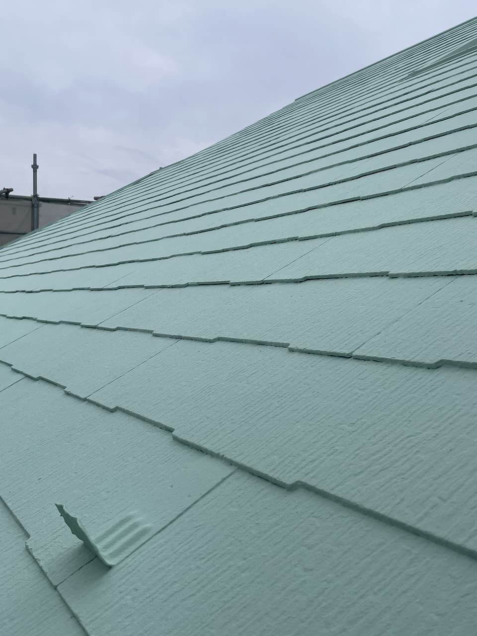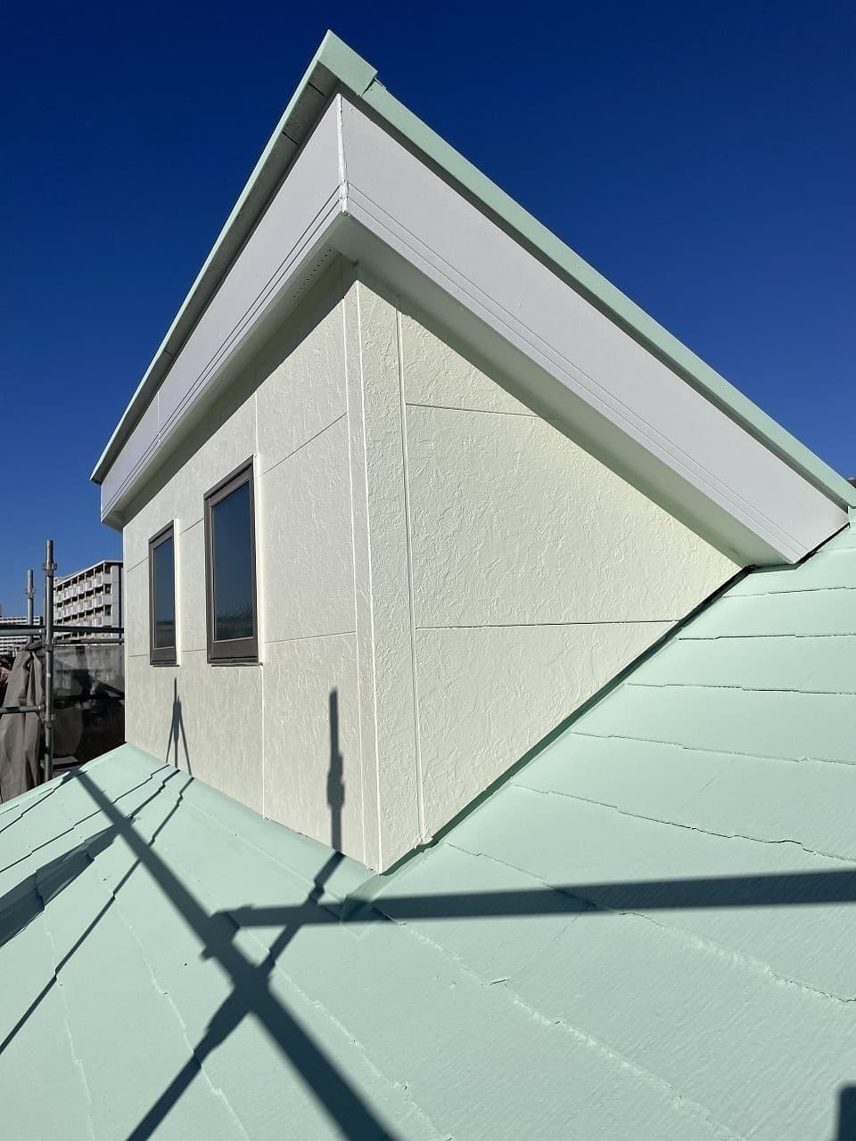 屋根には高性能断熱セラミック塗料の「ガイナ」を選ばれ、耐久性や省エネはもちろん、空気質改善や防音性なども期待できます。